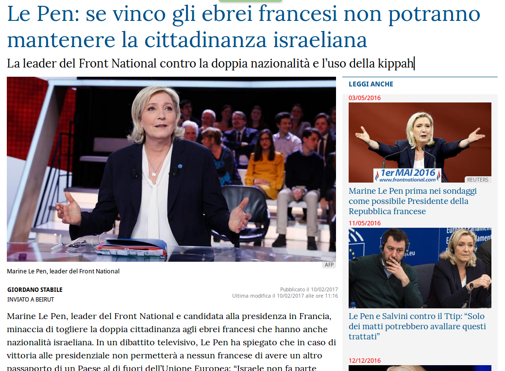 La Le Pen è la punta di diamante dell'estrema destra europea e sconfiggerla fra meno di un centinaio di giorni non sarà semplice, nemmeno con Macron (quasi impossibile con Fillon).